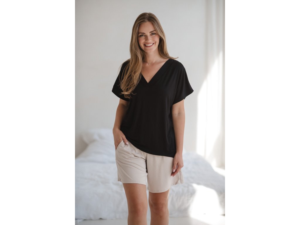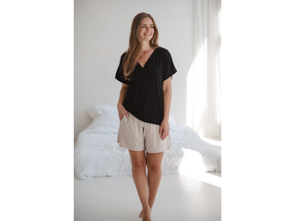 Bambusové těhotenské pyžamové kalhoty krátké Moon, světle béžová