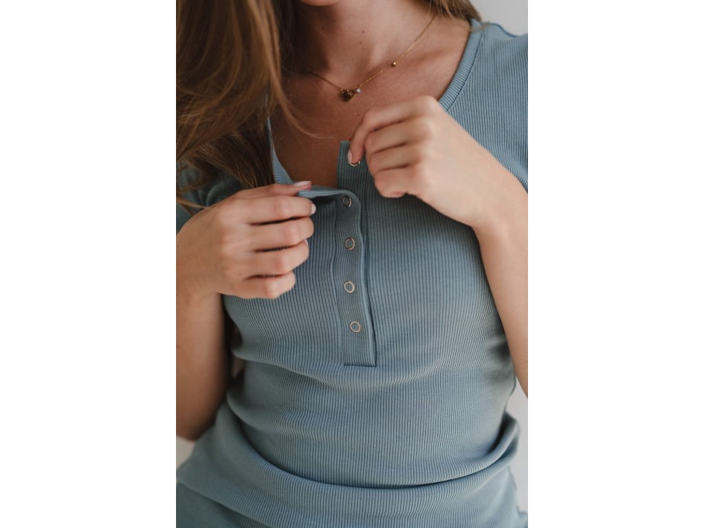 Těhotenská a kojicí halenka Tummy, krátký rukáv, patinovaná žebrovaná