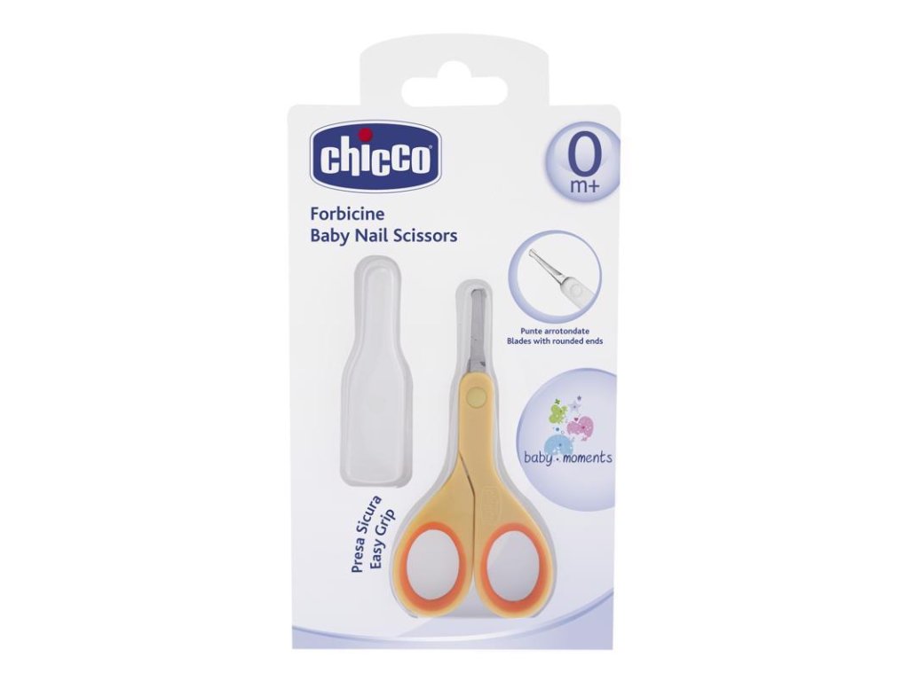 Chicco nůžky s kulatou špičkou. Malé praktické nůžky jsou ideálním pomocníkem pro stříhání dětských nehtů. Mají zahnuté ostří z nerez oceli s kulatými konci pro dokonalé bezpečí při jejich užití. Pro zachování hygieny jsou tyto nůžky doplněny praktickým ochranným krytem.