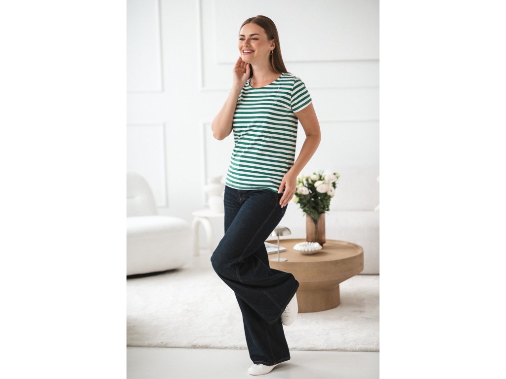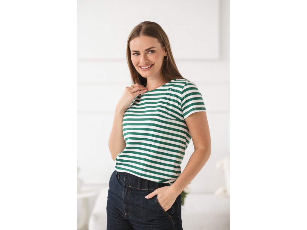 Kojicí halenka, krátký rukáv MamaFlow se zelenými pruhy