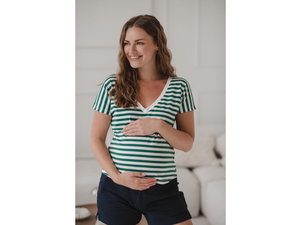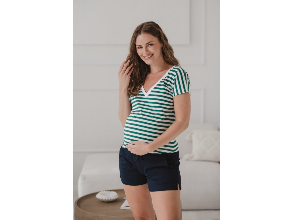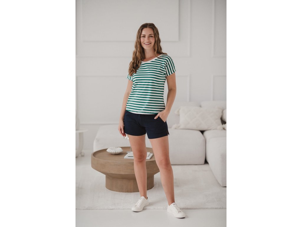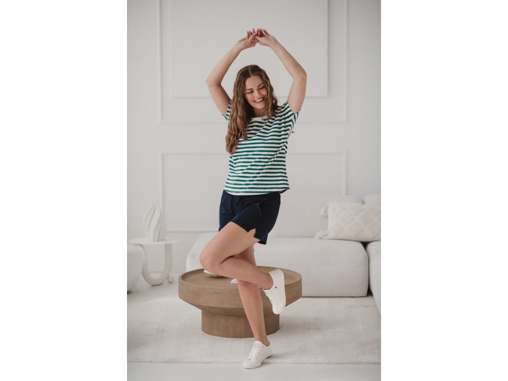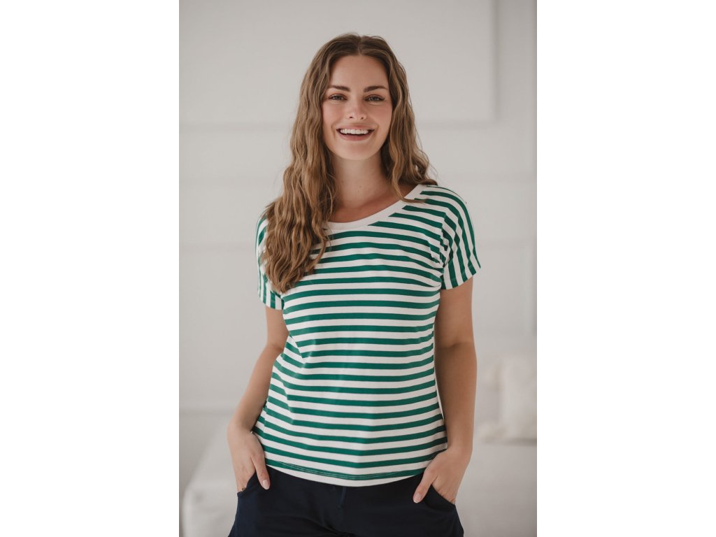 Oboustranná halenka Two Ways, krátký rukáv, zeleno-bílé pruhy