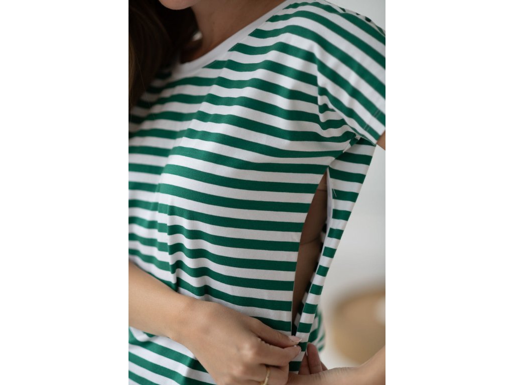 V oblasti výstřihu najdete buď nenápadné zipy, nebo elegantní patentky, které zajišťují snadný a diskrétní přístup k prsu. Kojení tak bude pohodlné doma i na cestách.