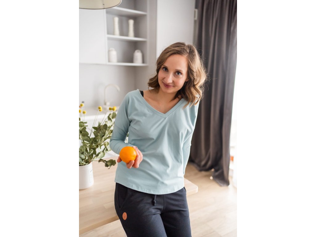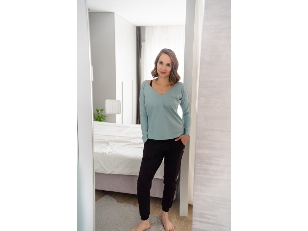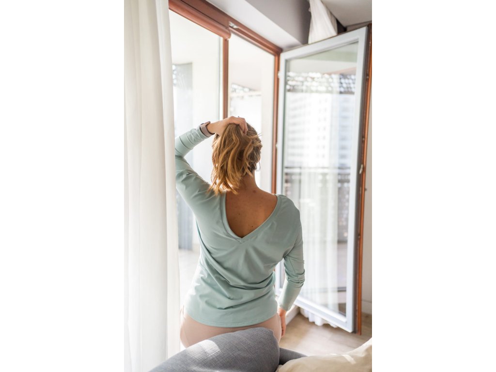 Oboustranná těhotenská a kojicí halenka Two Ways, dlouhý rukáv, mátová