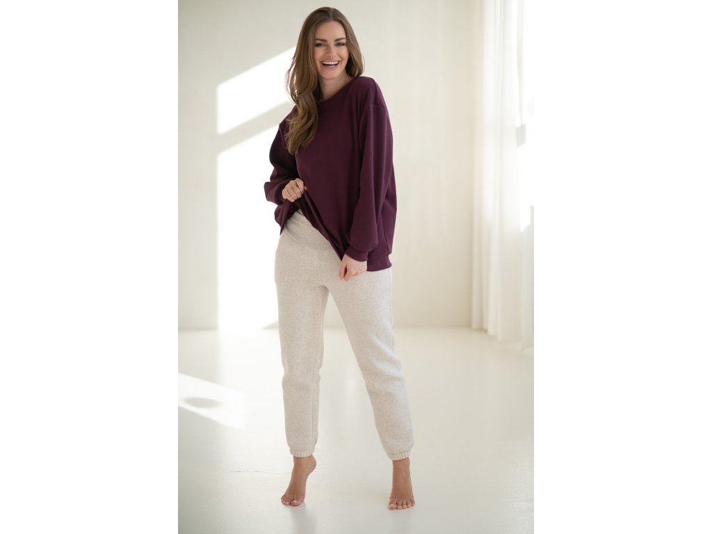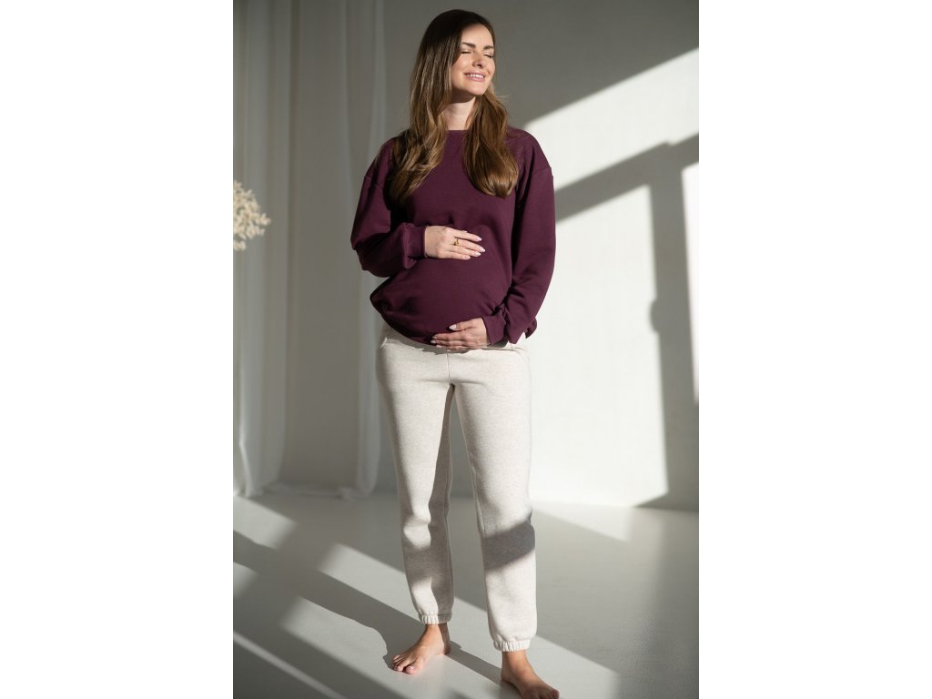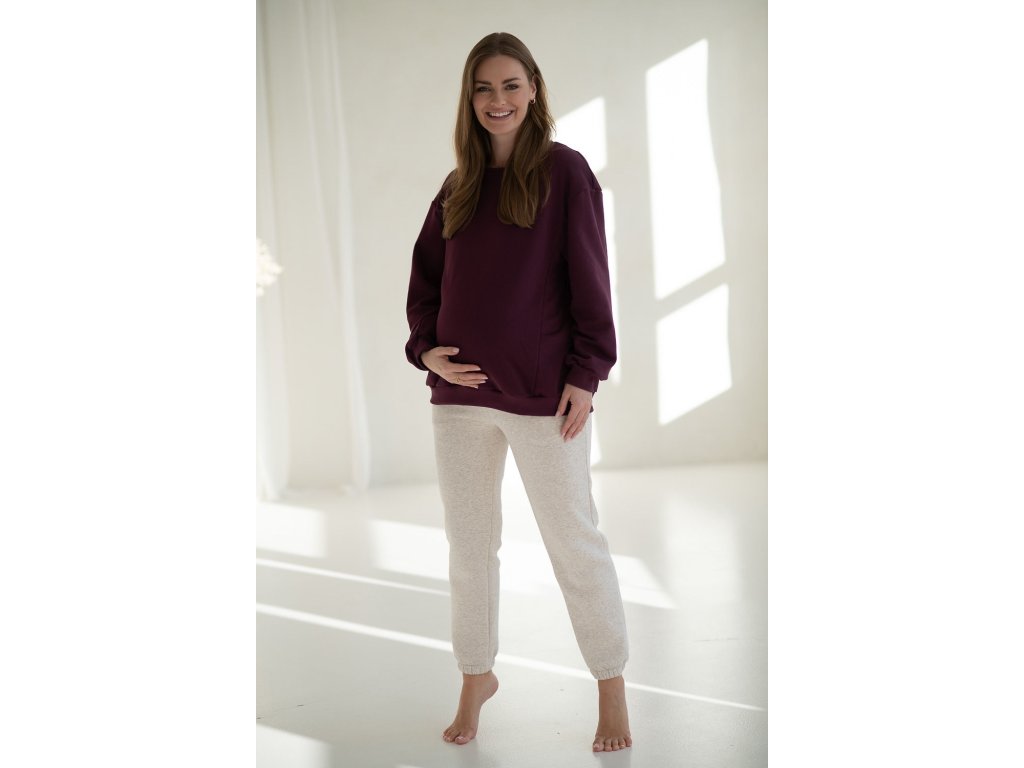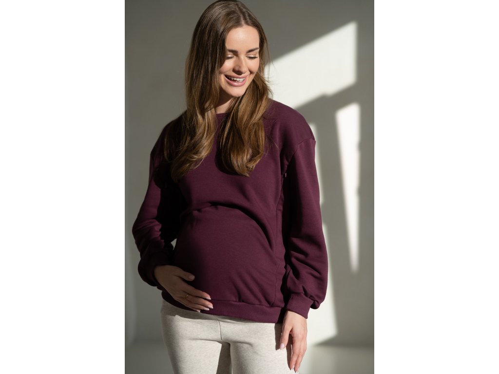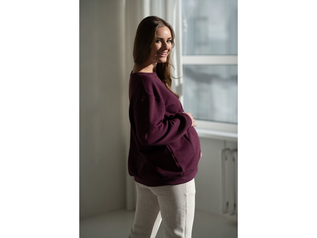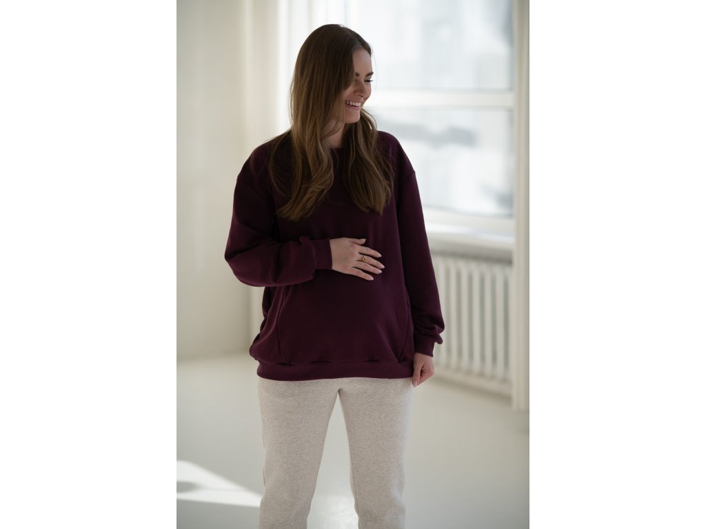 Těhotenská a kojicí mikina oversize Milk It Easy, vínová