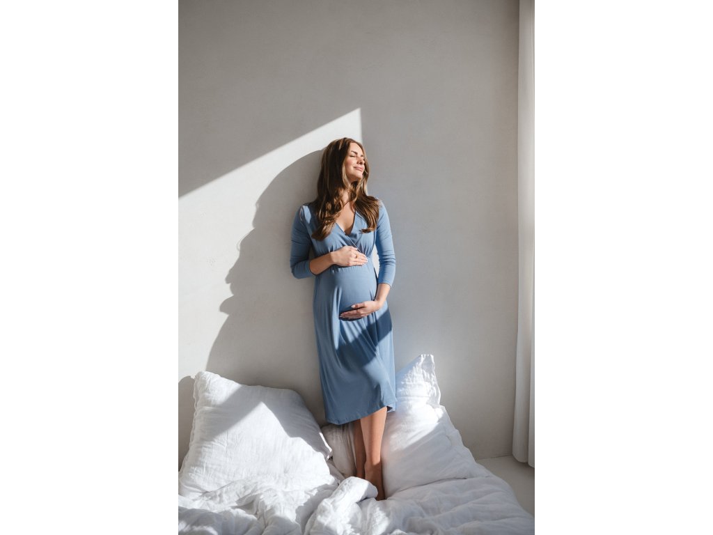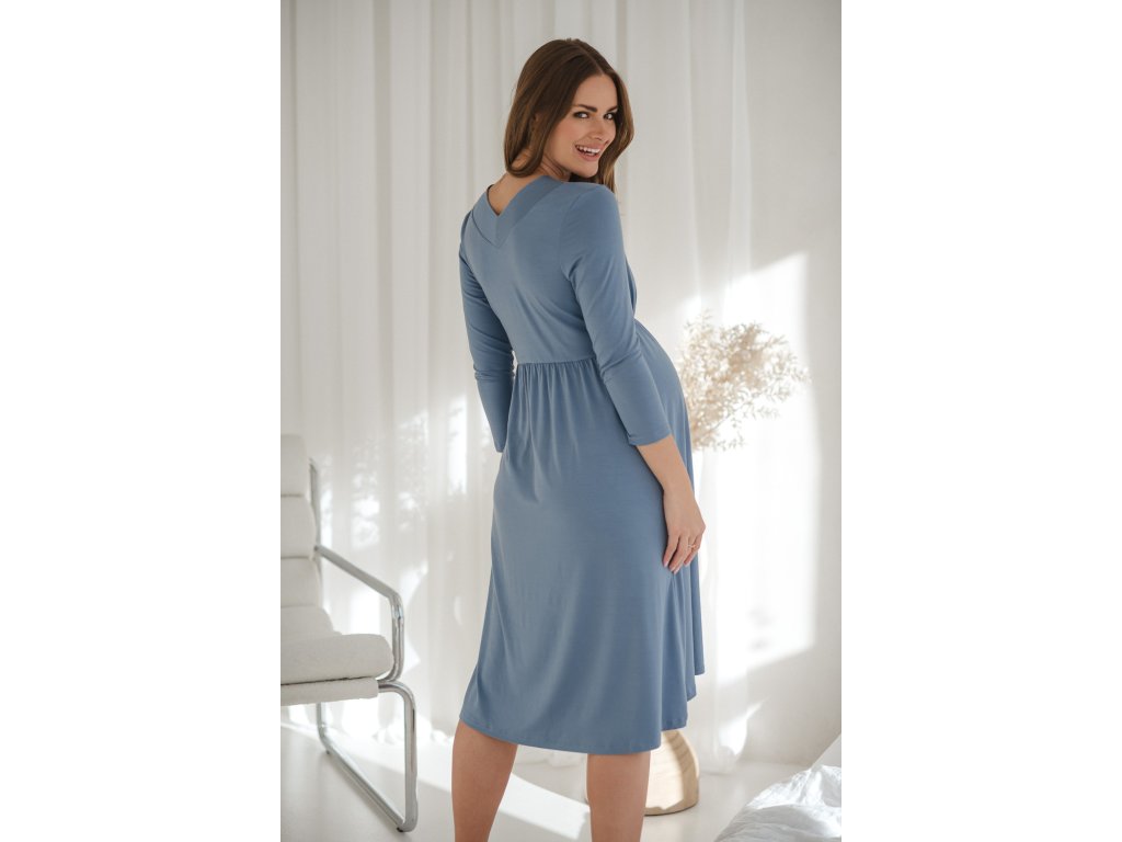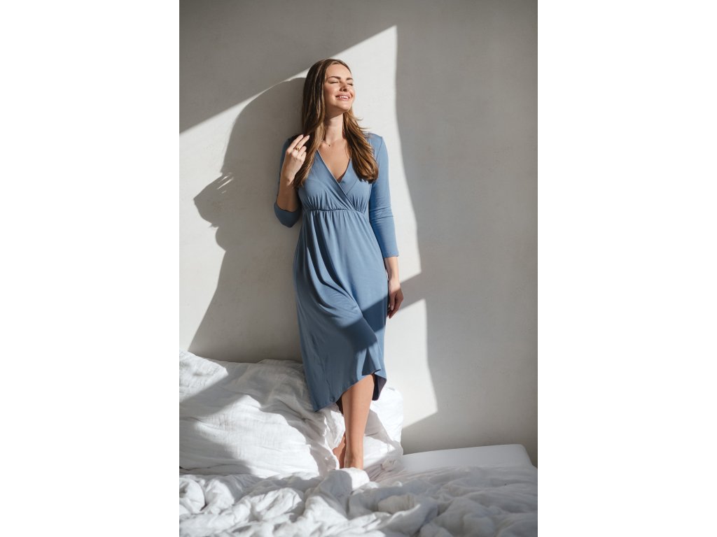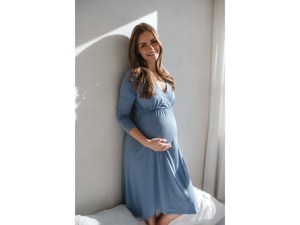 Těhotenská a kojicí noční košile z bambusu Star Light světle modrá, rukáv 7/8