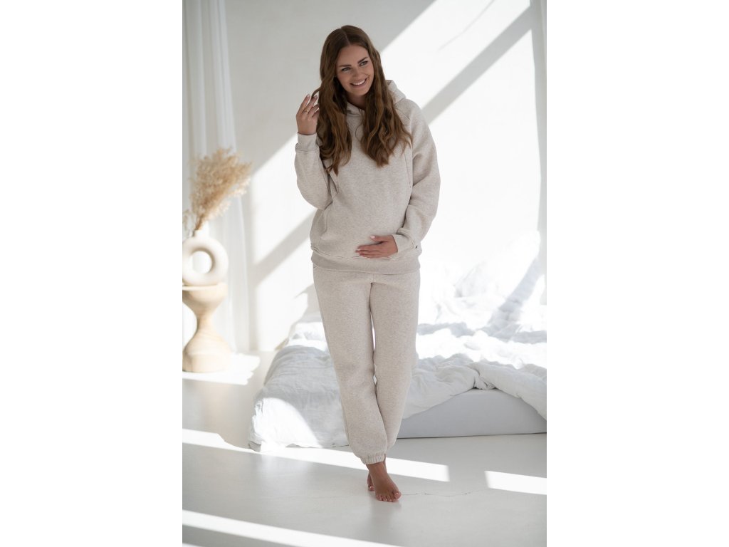 Těhotenské tepláky Motherhood, světle latte melanž